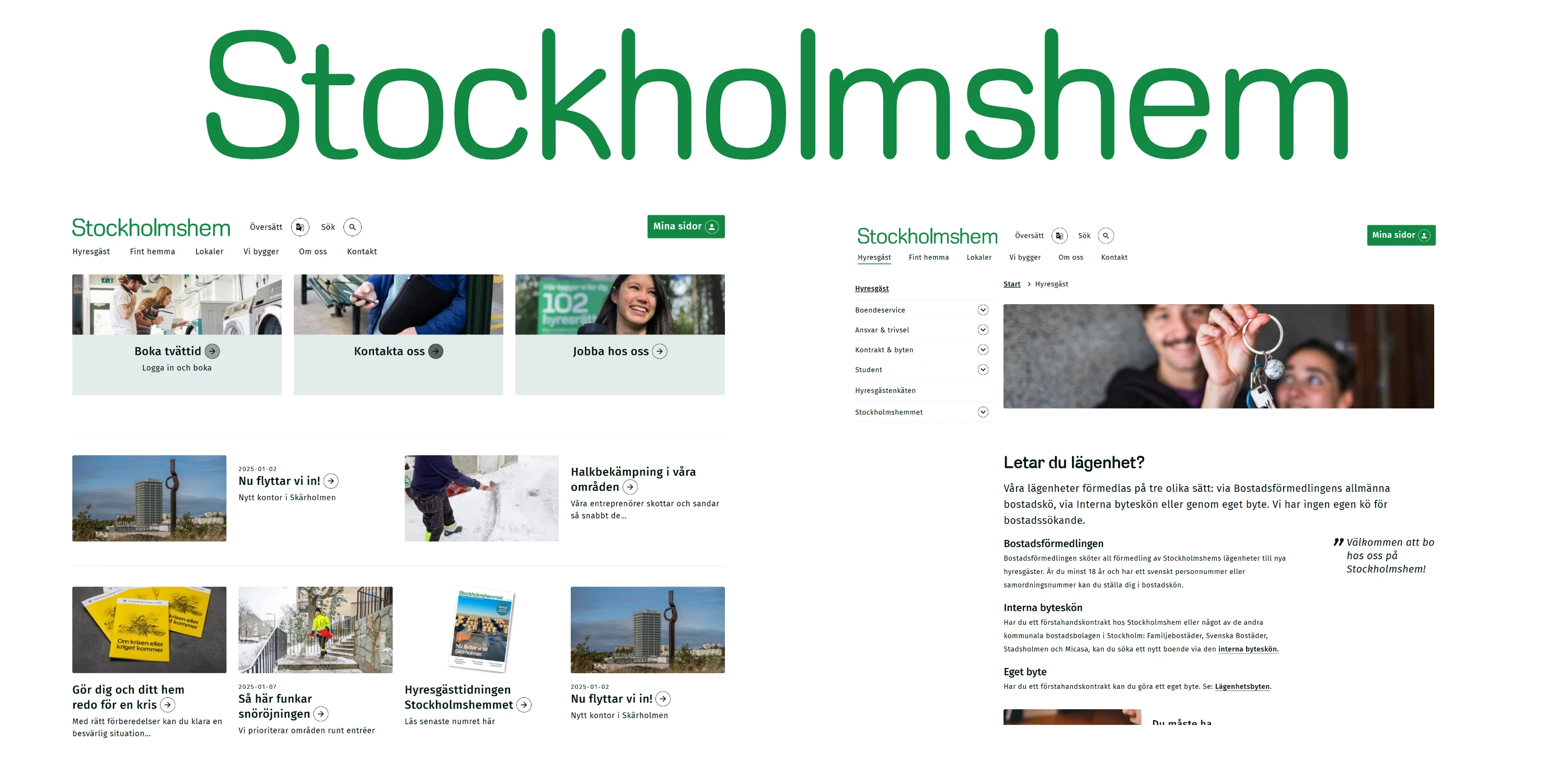 The new homepage provided Stockholmshem with a modern, mobile-friendly platform that reflected their brand and improved usability for residents. My contributions focused on building clean, maintainable front-end code and ensuring the design adapted smoothly to both desktop and mobile contexts.